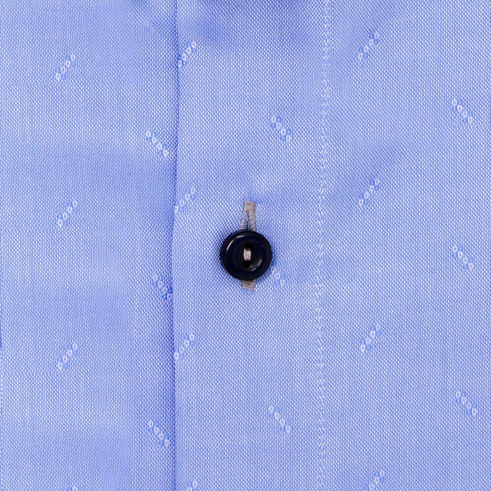 The light-blue palette reads professional with moderate-good coverage (~3/5); wrinkle resistance: ~4/5; breathability: medium-high.